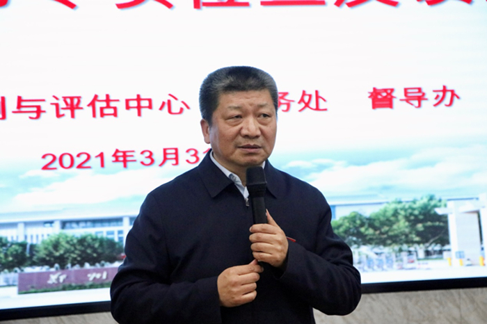 3月31日下午,我校在A楼第一学术报告厅召开试卷规范专项检查反馈会。校长于向英、常务副校长李庆阳出席会议,教务处、督导办、教学质量监测与评估中心、各单位教学管理人员共100余人参加了会议,会议由李庆阳主持。