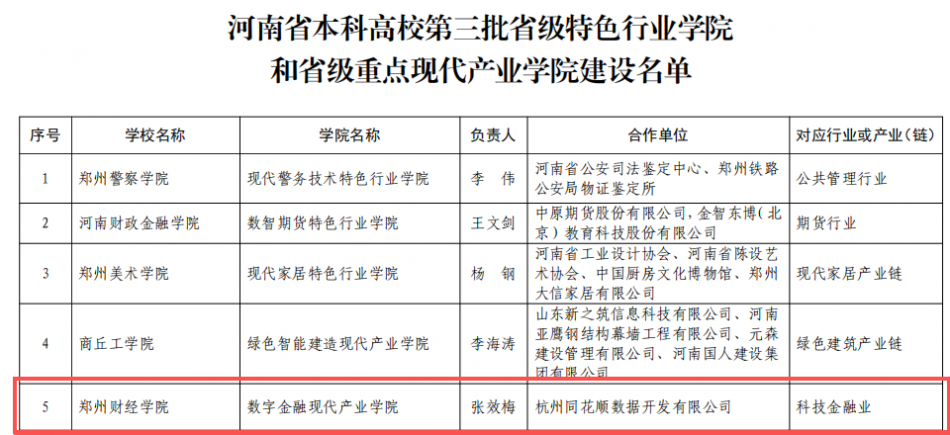 近日,河南省教育厅与河南省工业和信息化厅联合印发《关于公布河南省本科高校第三批省级特色行业学院和省级重点现代产业学院名单的通知》(教高〔2024〕380号),我校申报的数字金融现代产业学院成功入选。